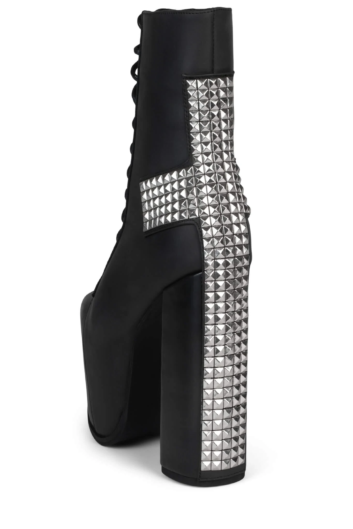 Lace-up platform boot with studded cross-detail
