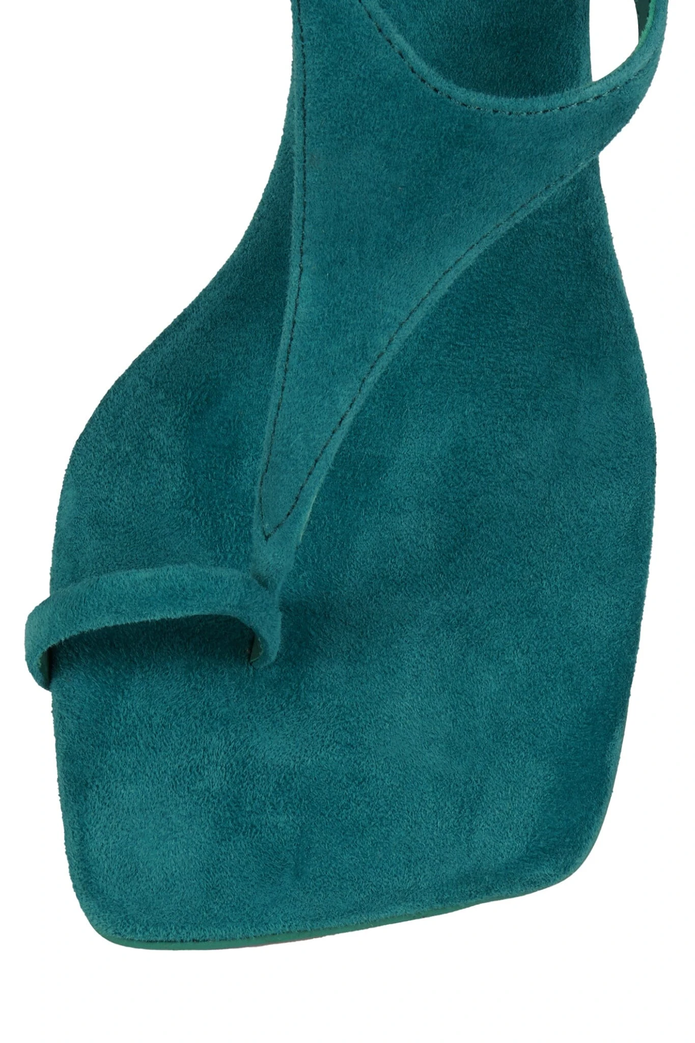 Strappy thong sculpted heel with toe-ring and wrap-around ankle strap