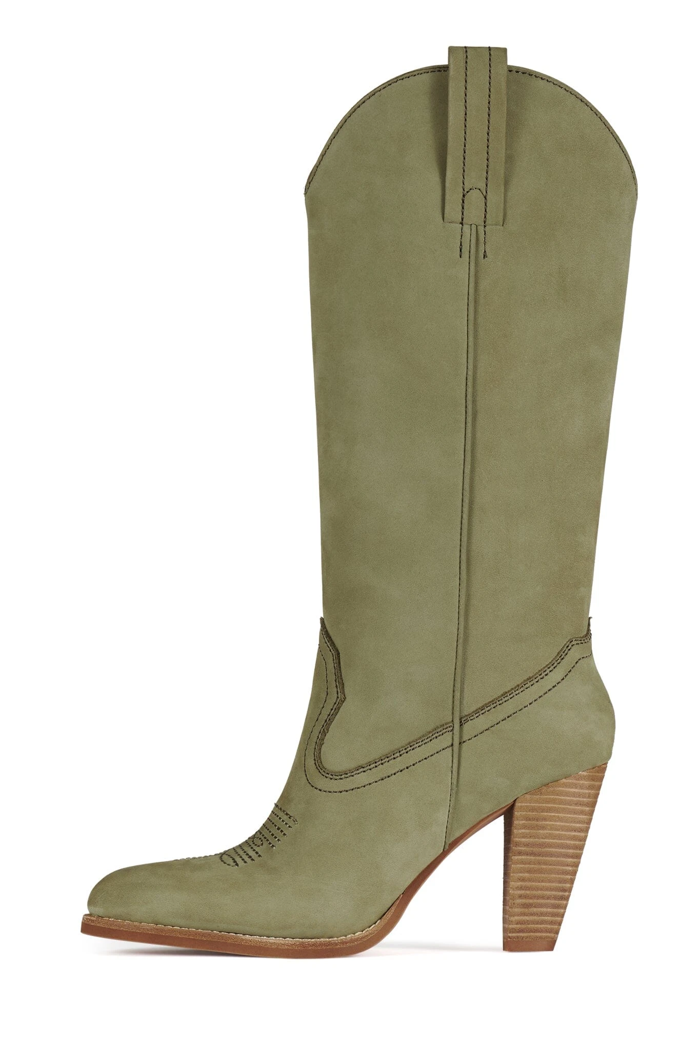 Knee-high western boot with stacked heelย