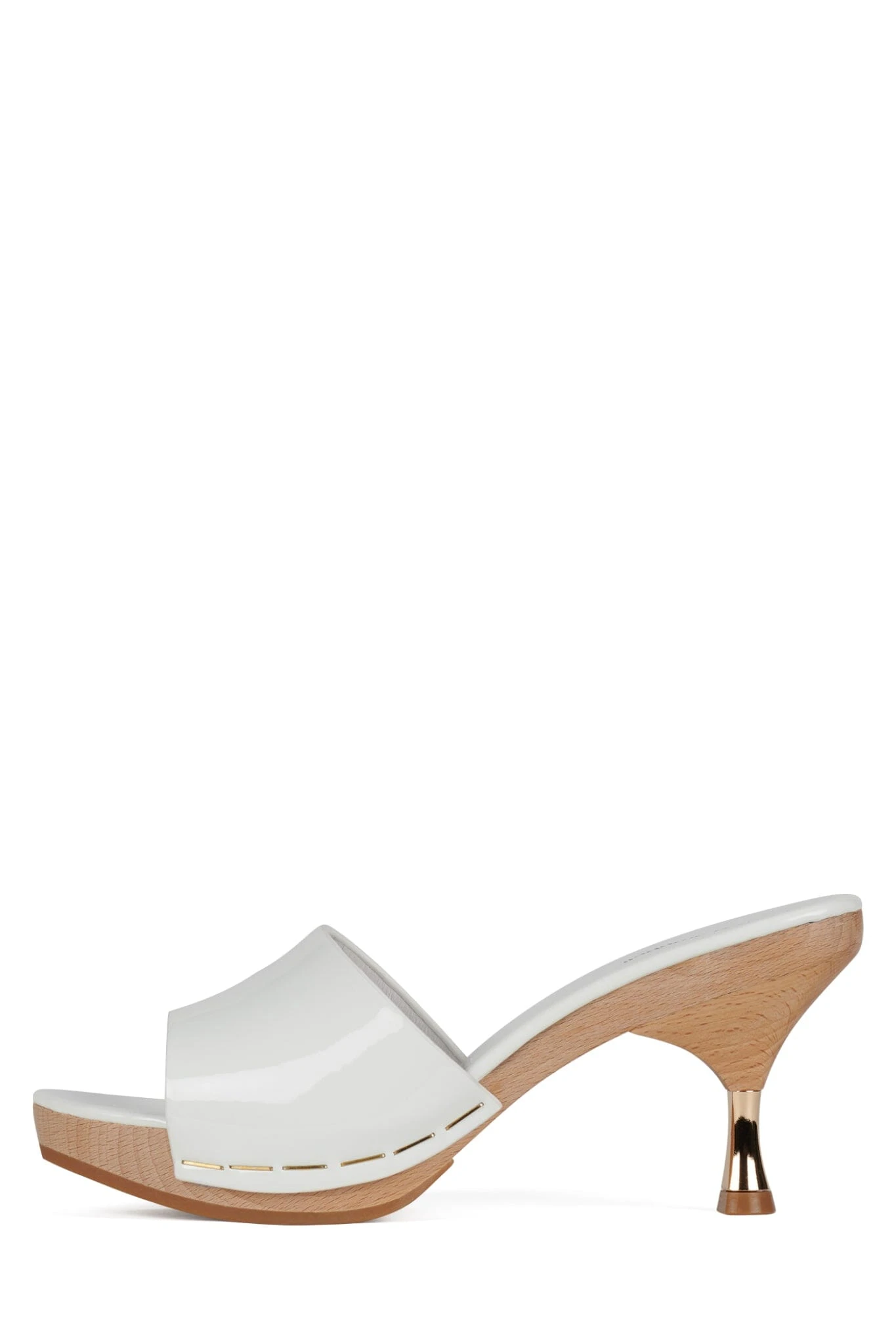 Platform wooden sandal with metal heel detail