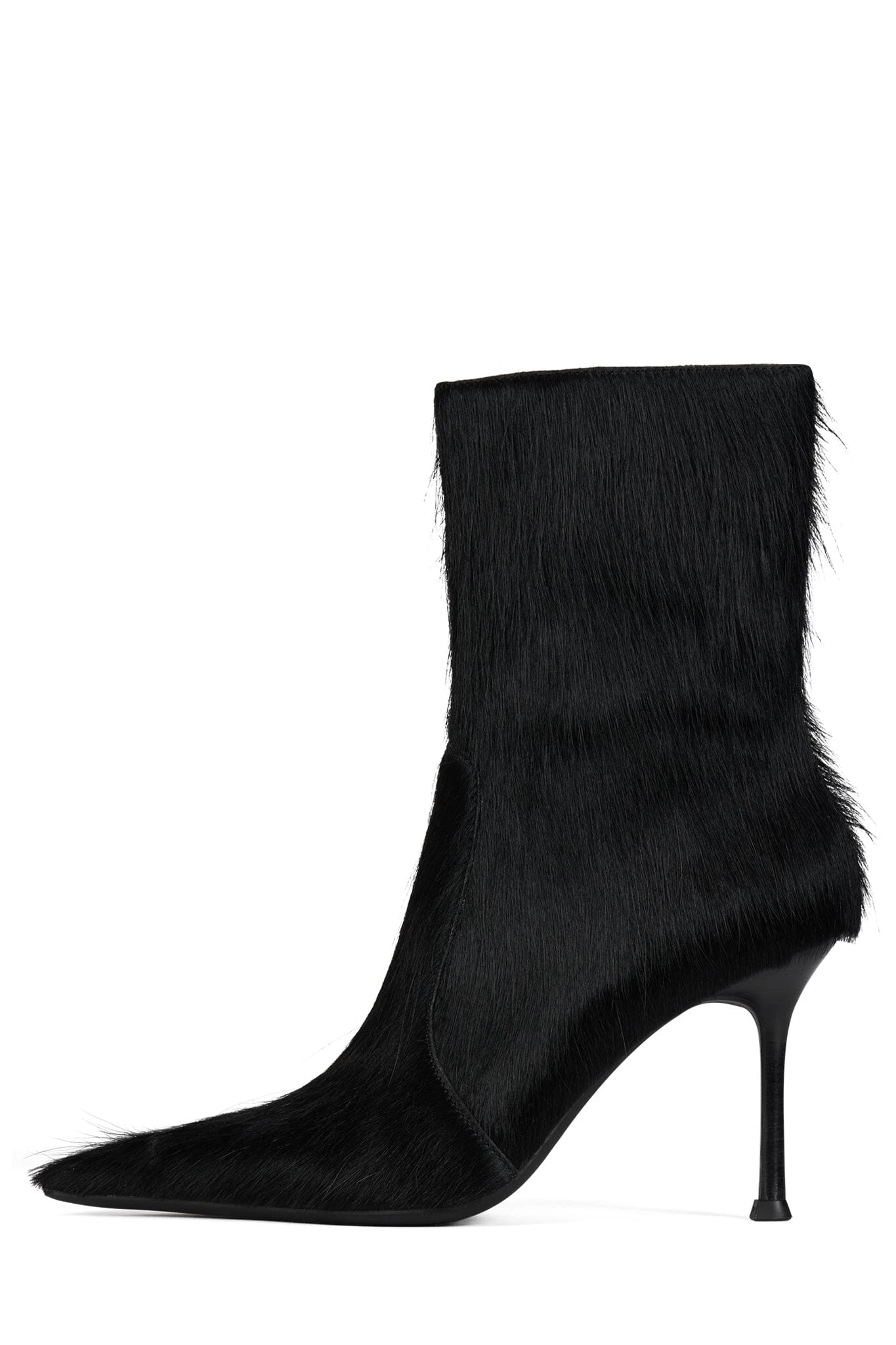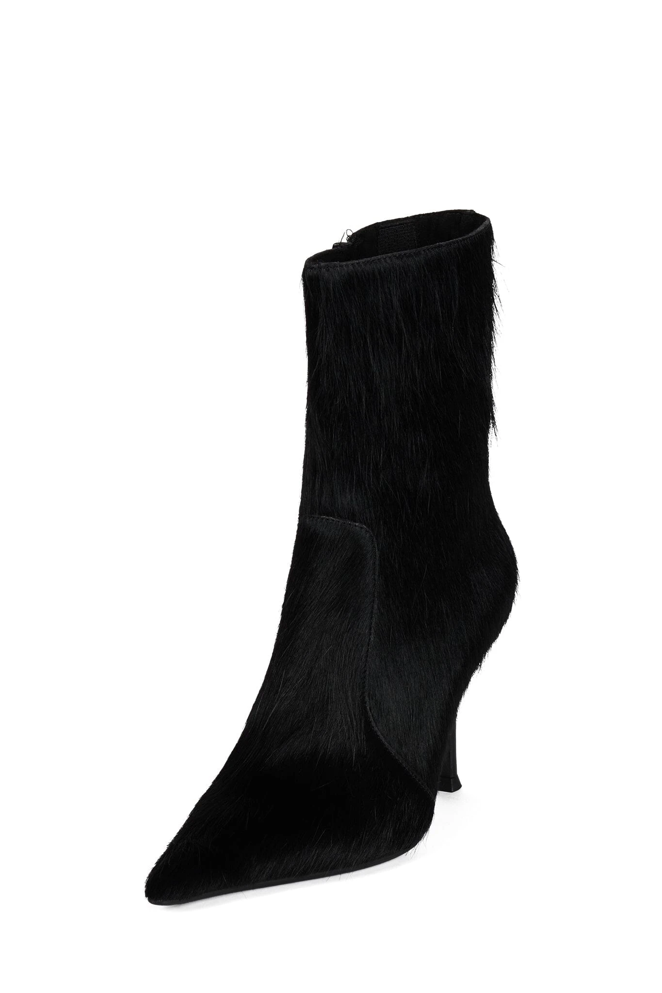 Calf-hair ankle stiletto bootie with elongated pointed toe.