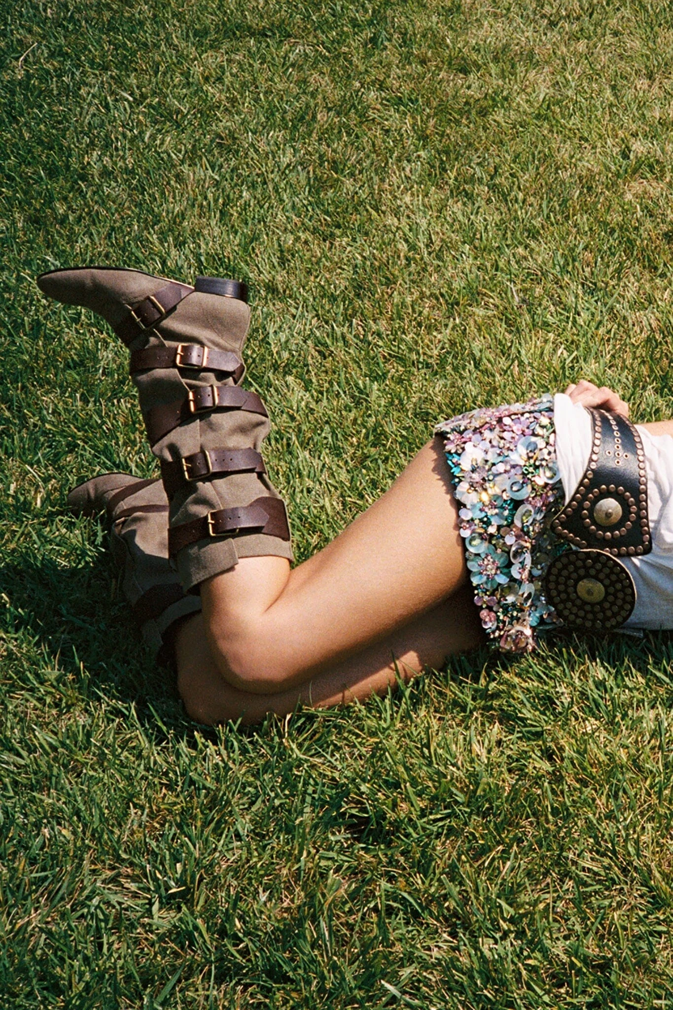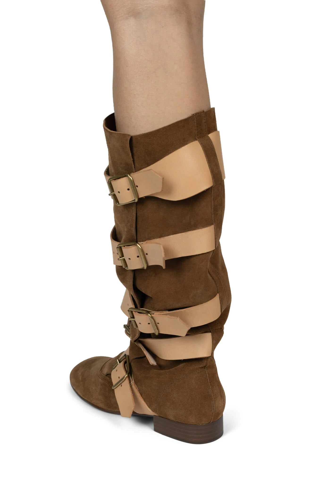 Slouch knee-high riding boot with multi-buckle straps