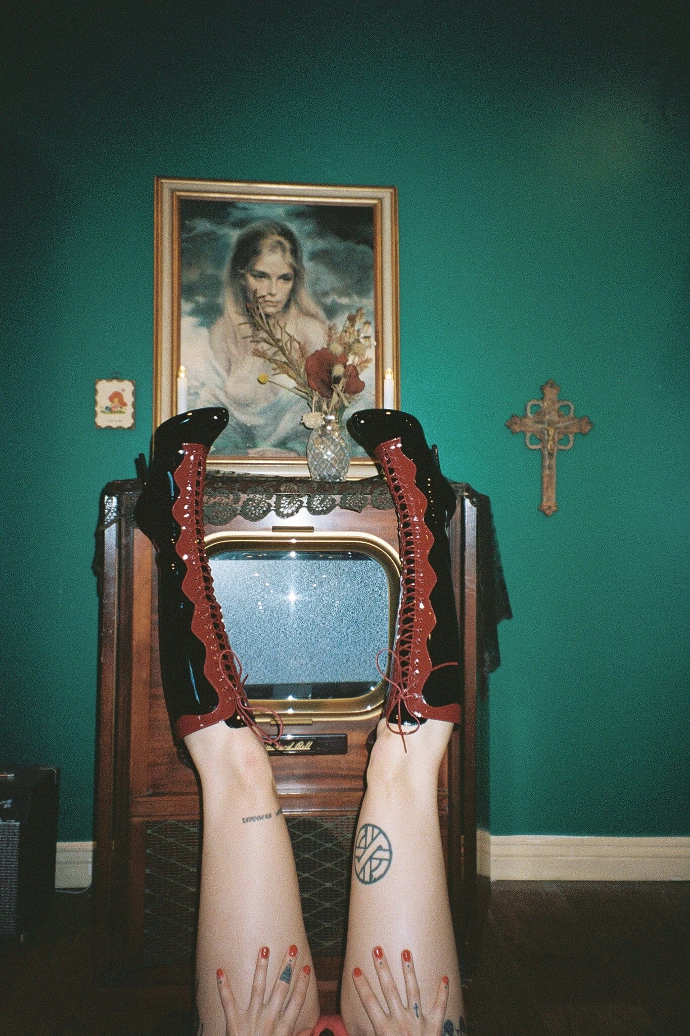 Knee-high Victorian-inspired stiletto riding bootÂ