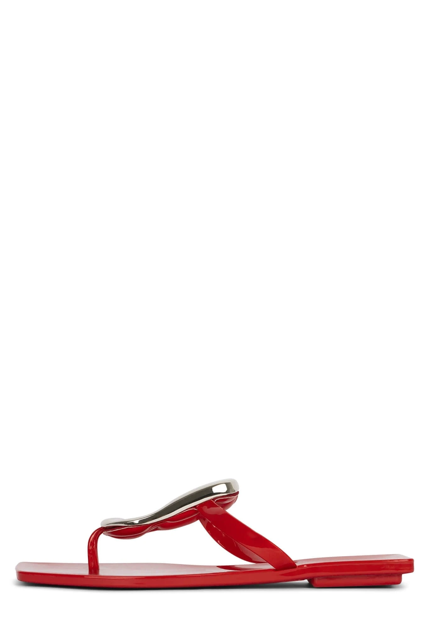Flat jelly thong sandal with metal embellishment