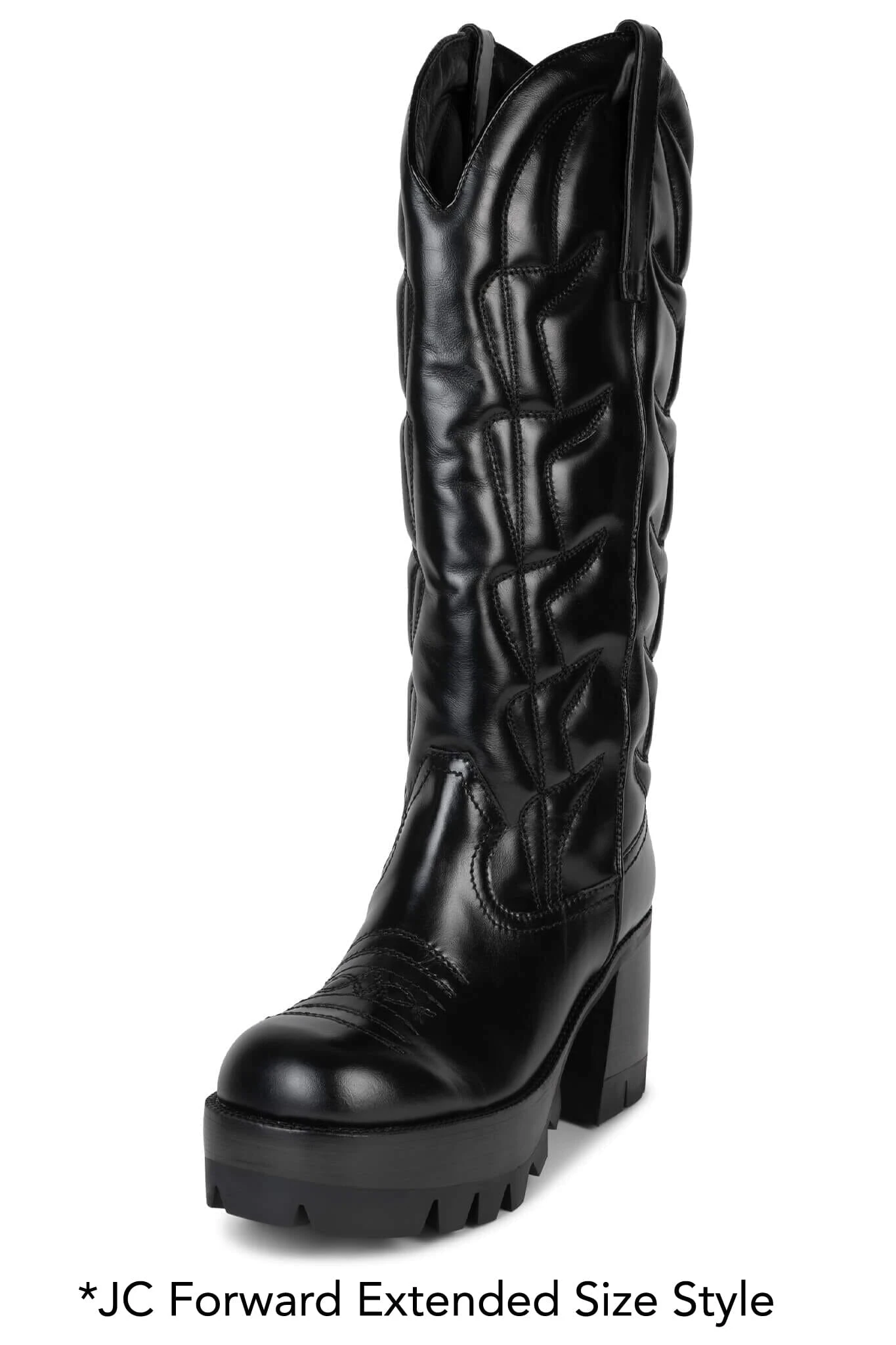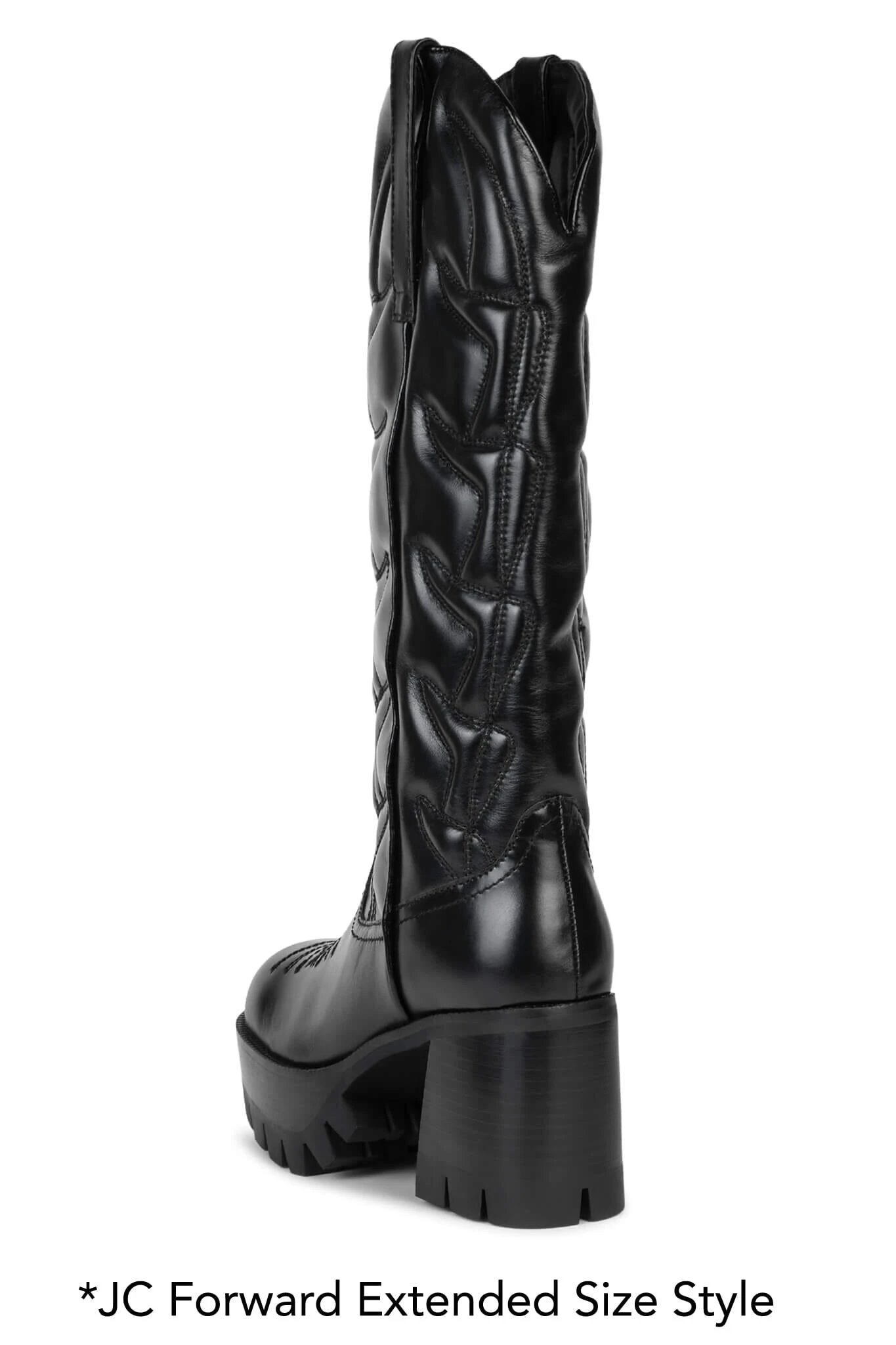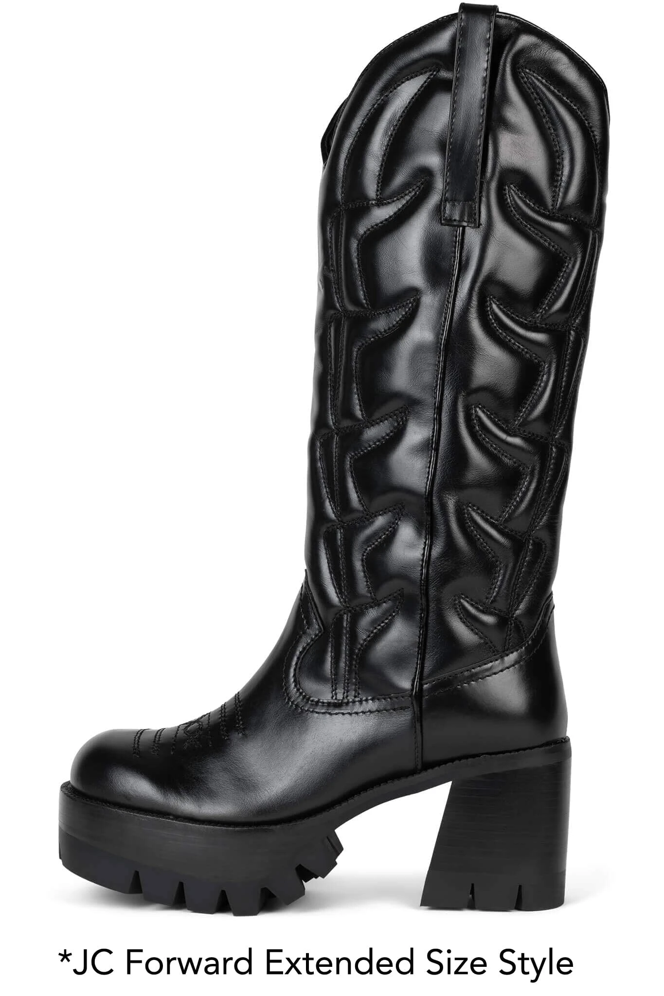 Platform knee-high cowboy boot with lug sole