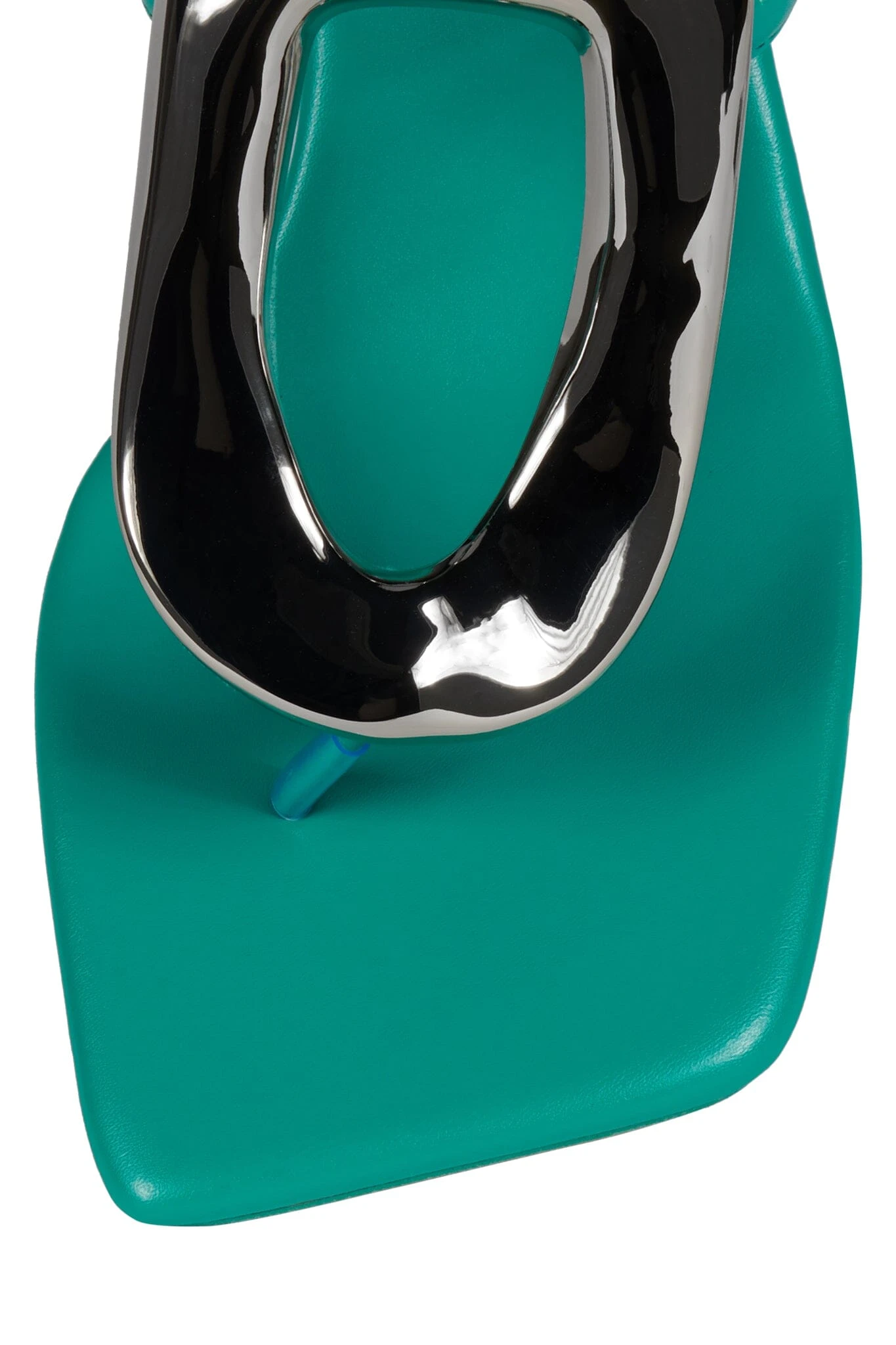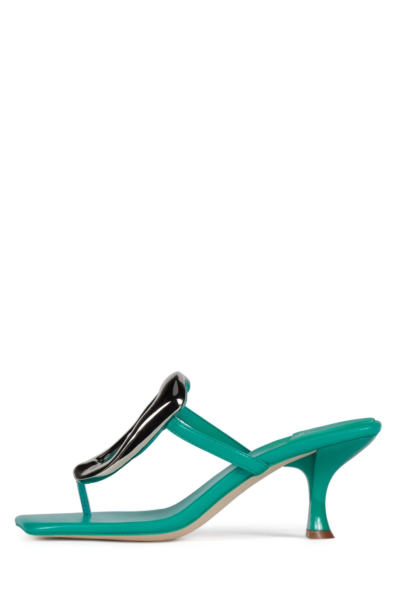 Heeled thong sandal with metal embellishment