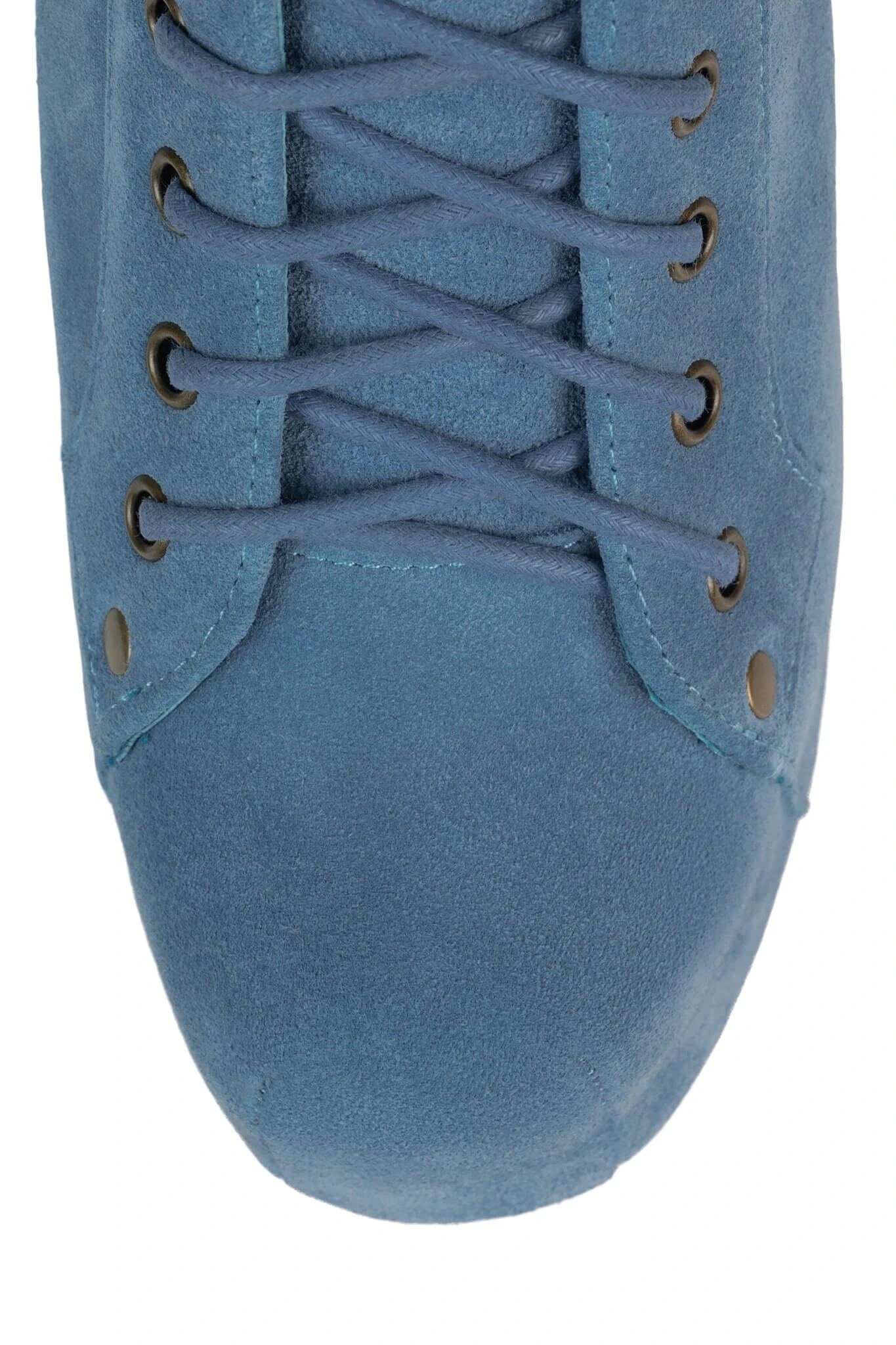 - Blue Suede/Apricot Suede: 5″ Heel, 2.5″ Platform