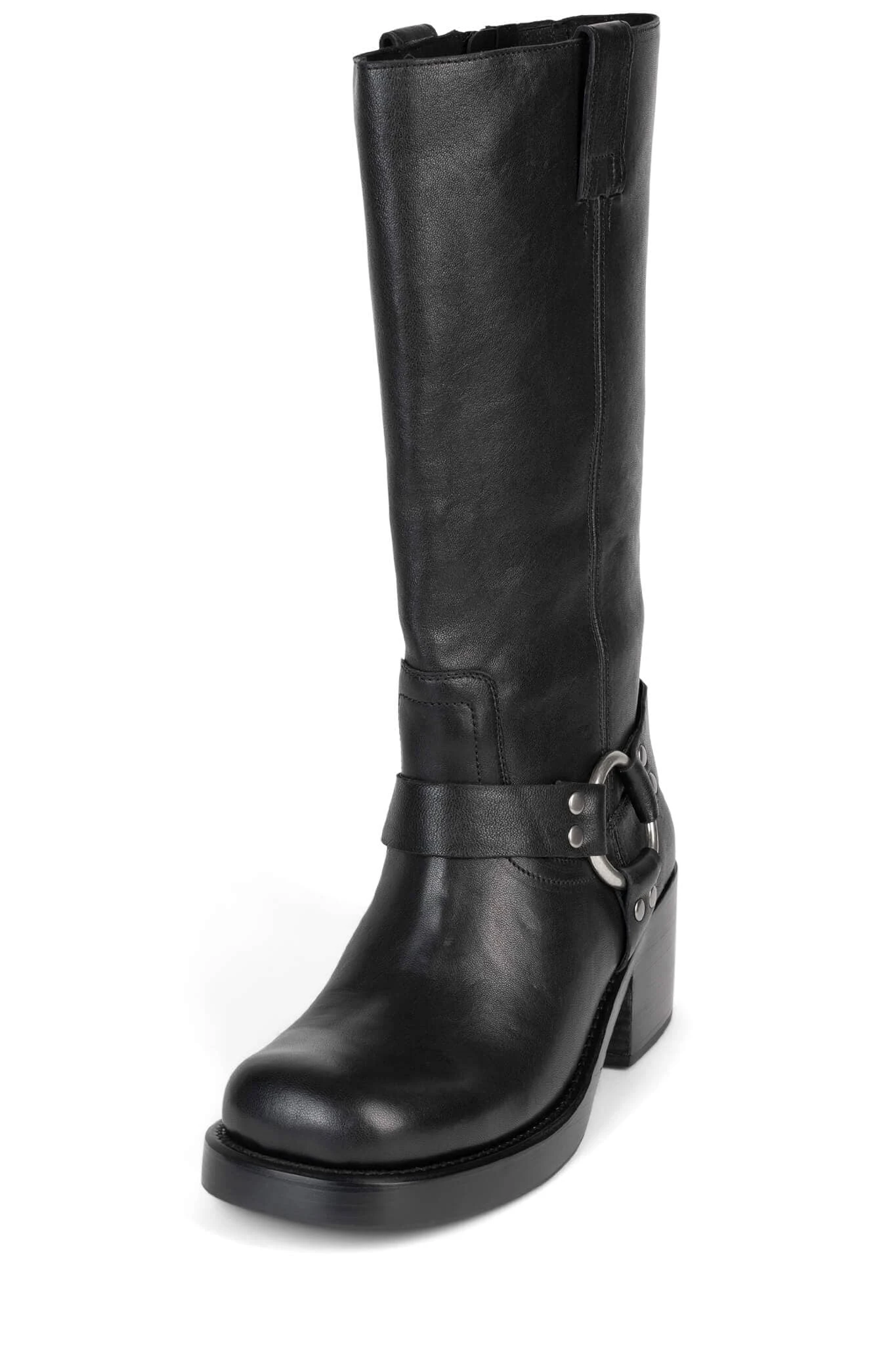 Knee-high heeled moto-boot