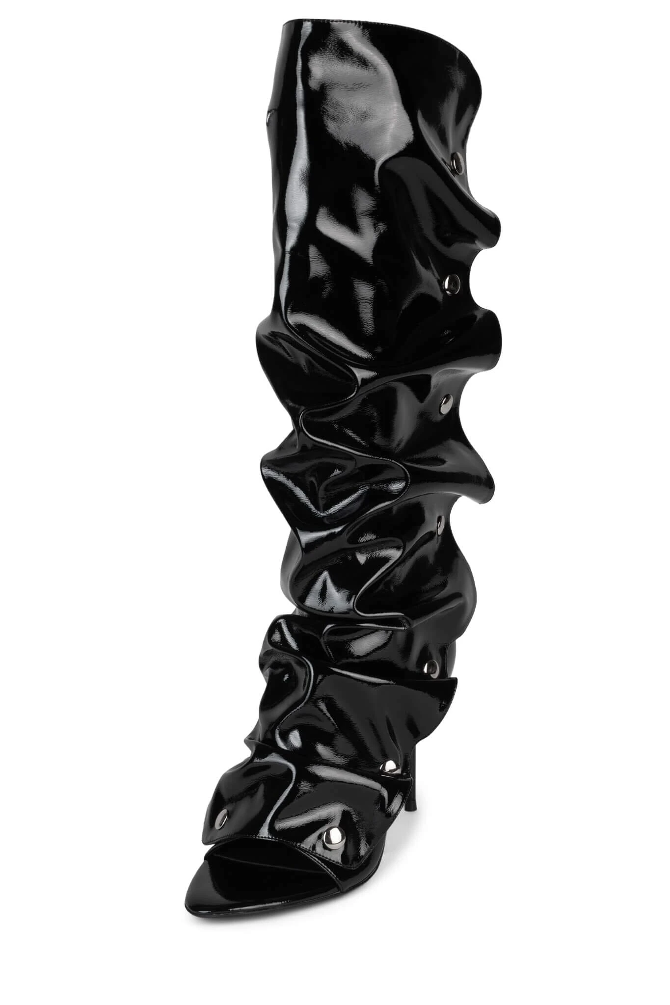 Slouched knee-high open-toe stiletto boot