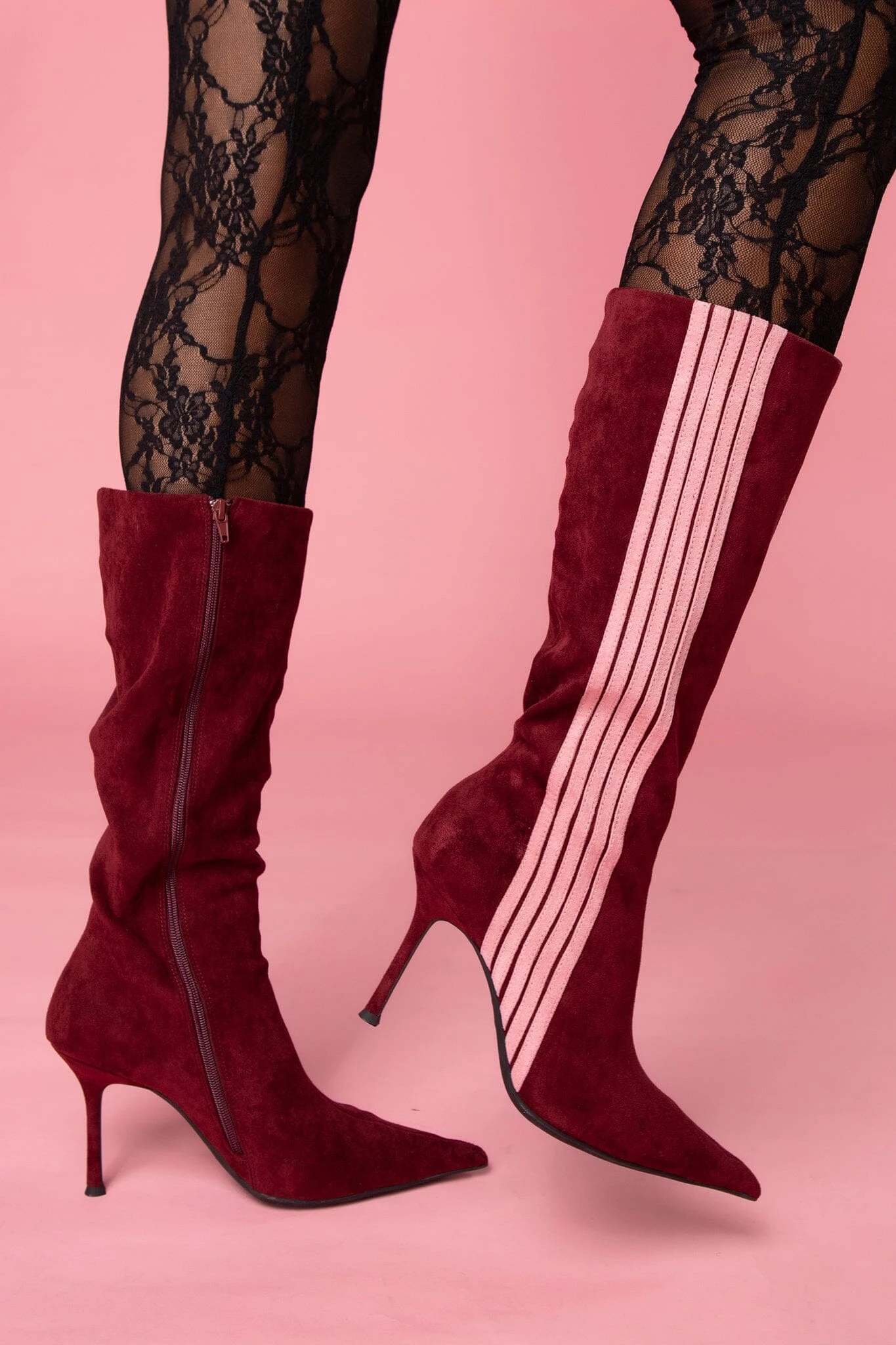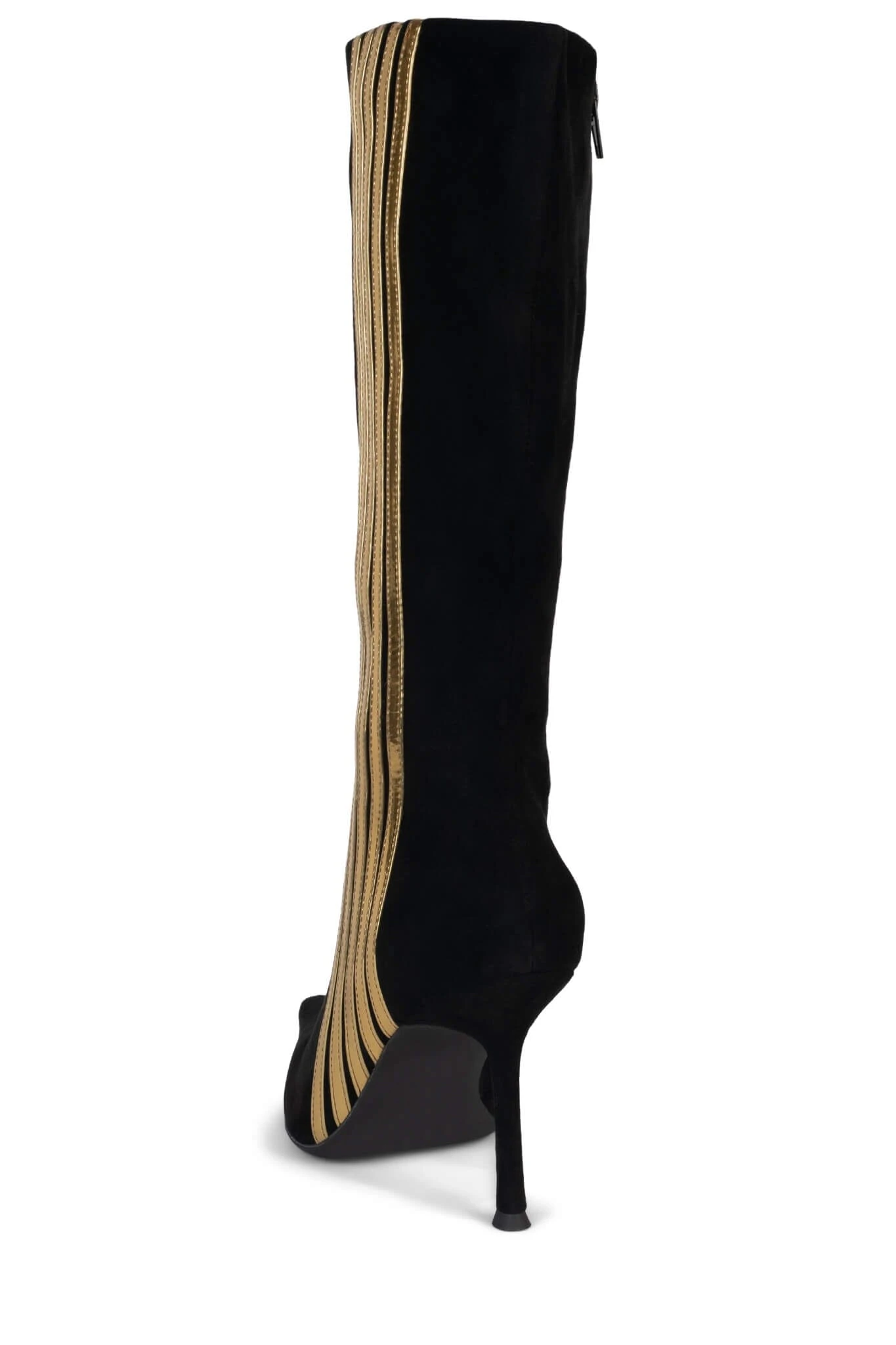 Pointed-toe knee-high stiletto boot with contrasting stripe detail