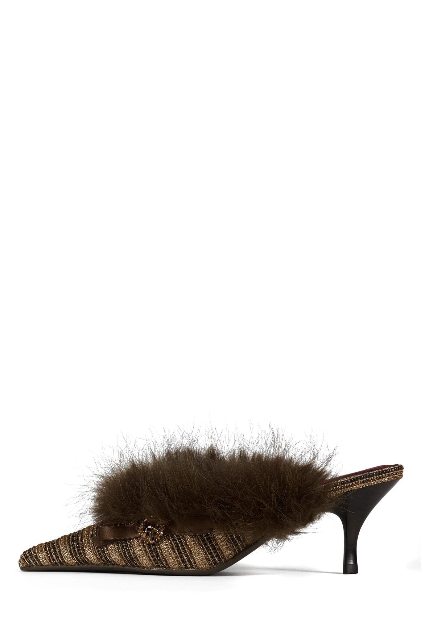Pointed-toe heeled mule with faux-fur lining