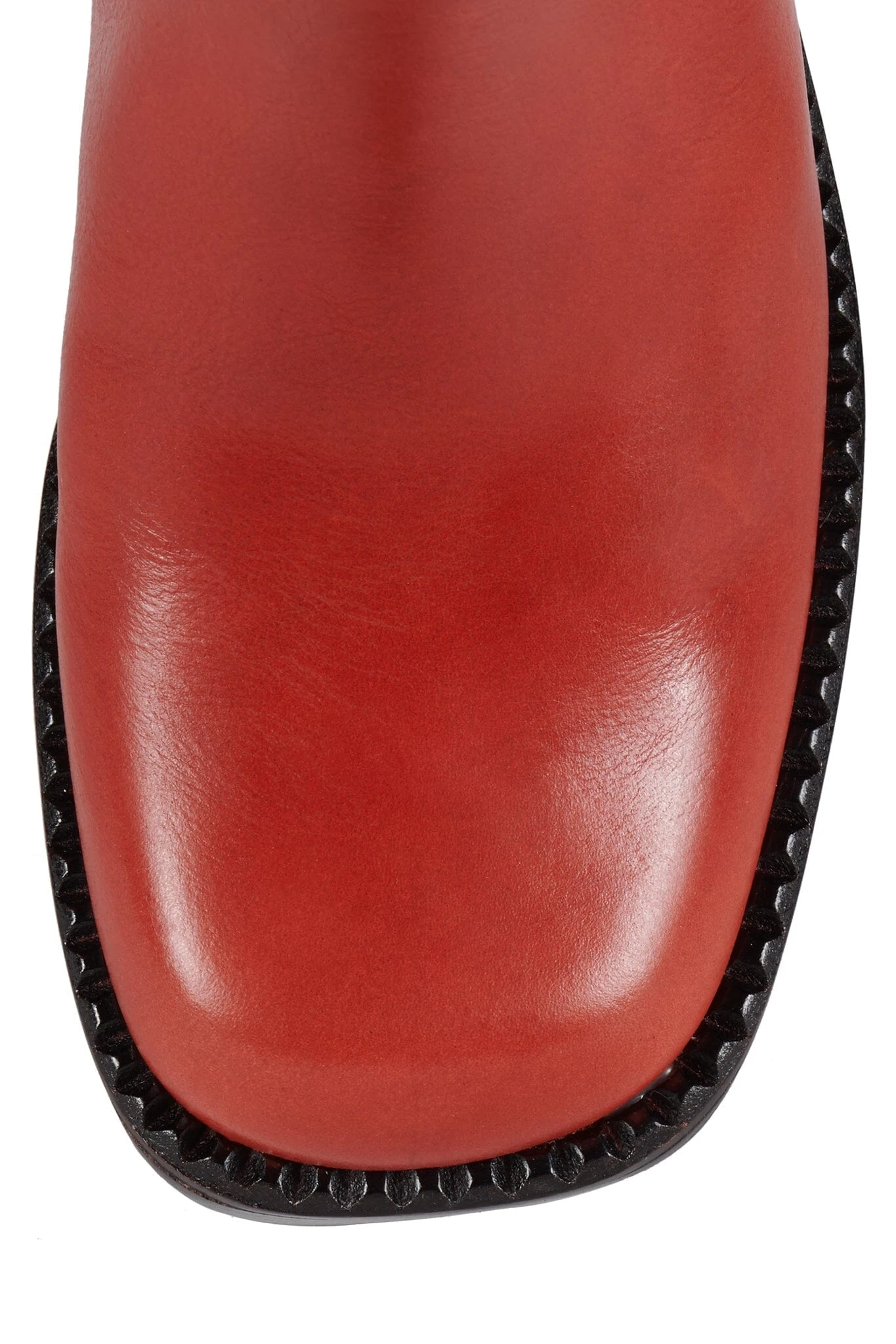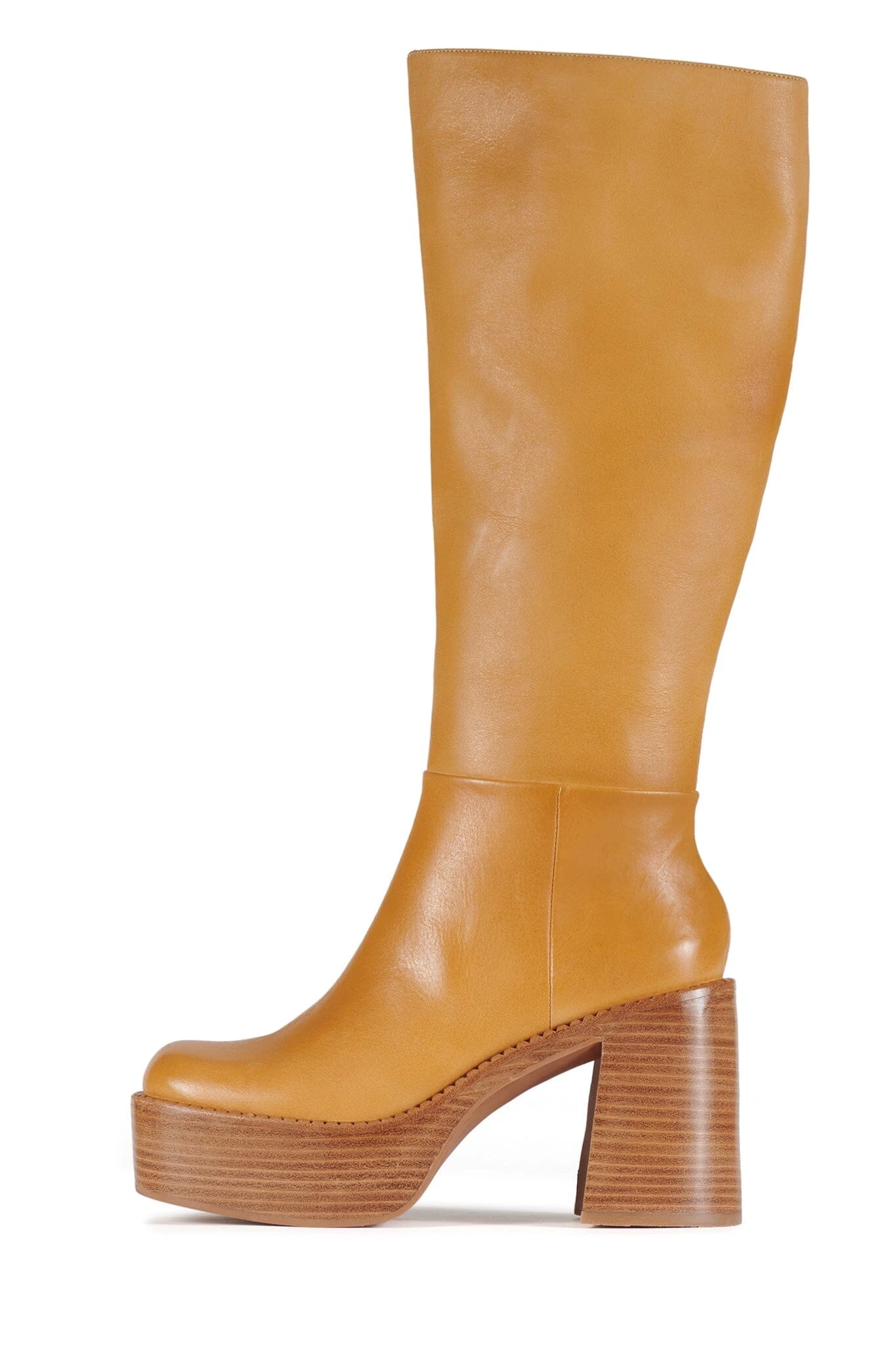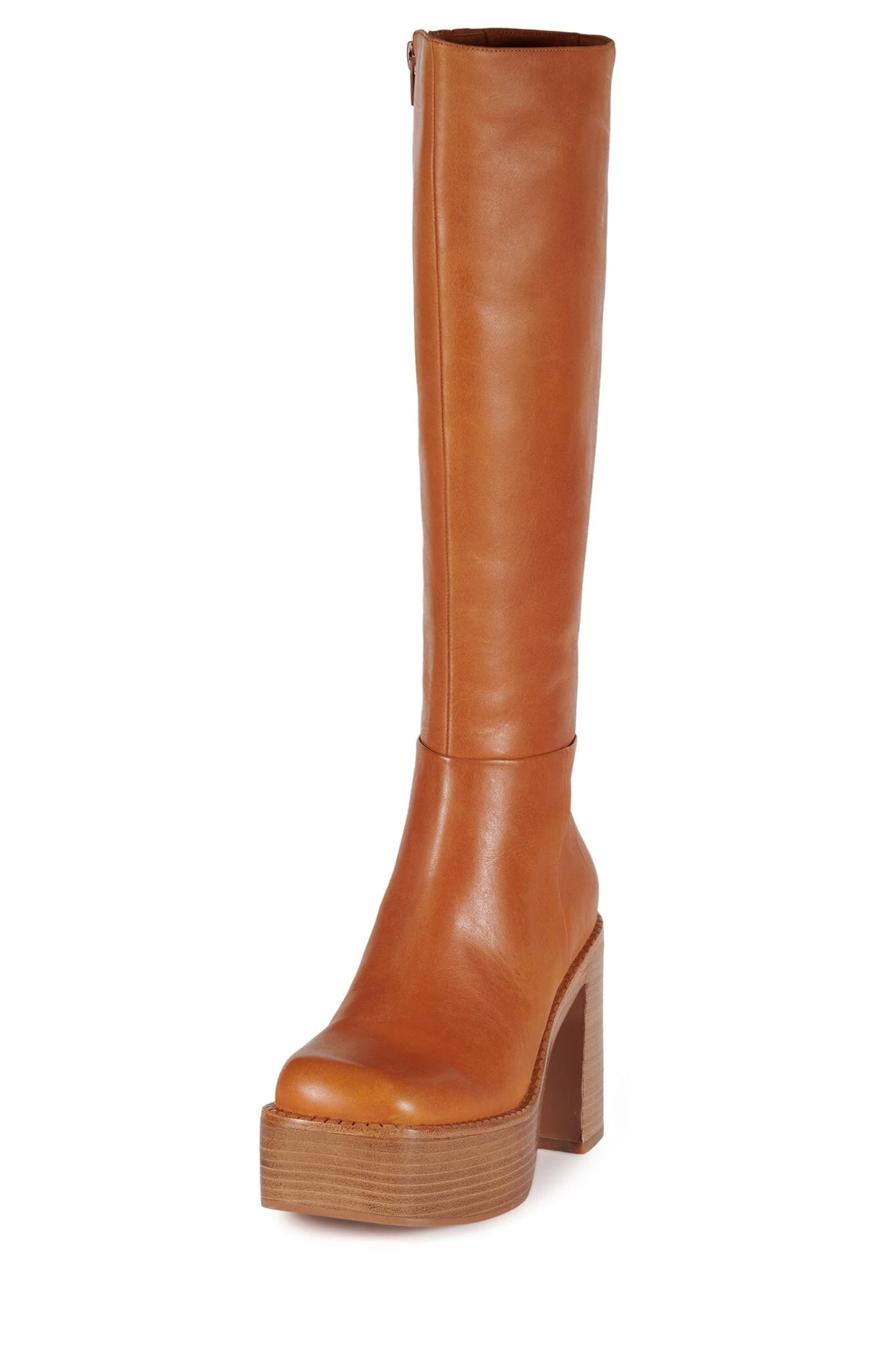 Knee-high platform boot with square toe.