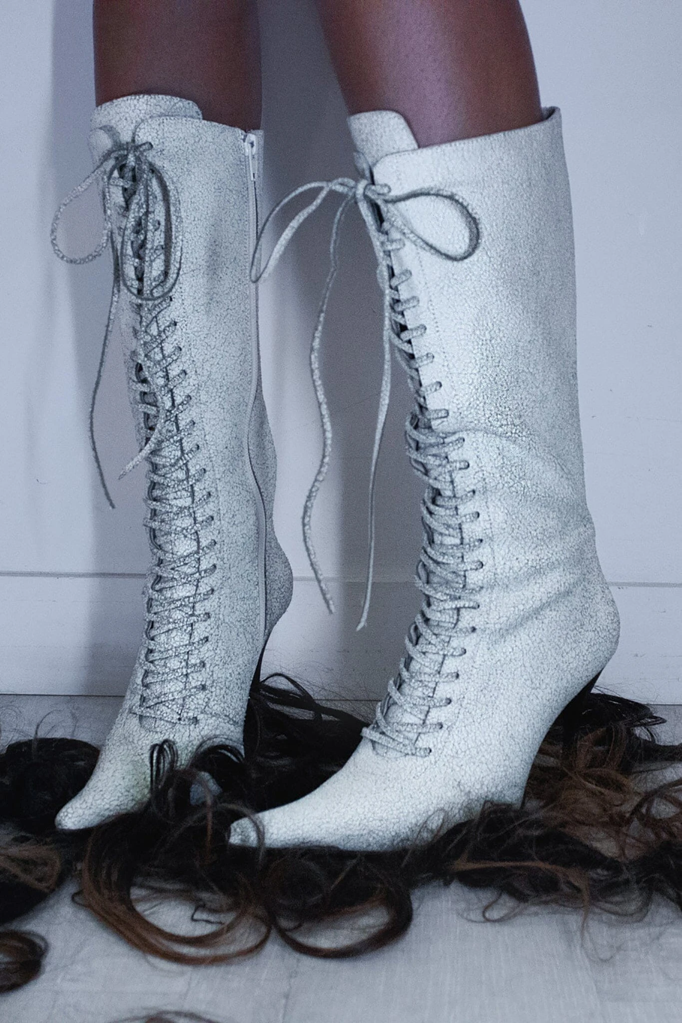 Knee-high lace-up stiletto bootÂ