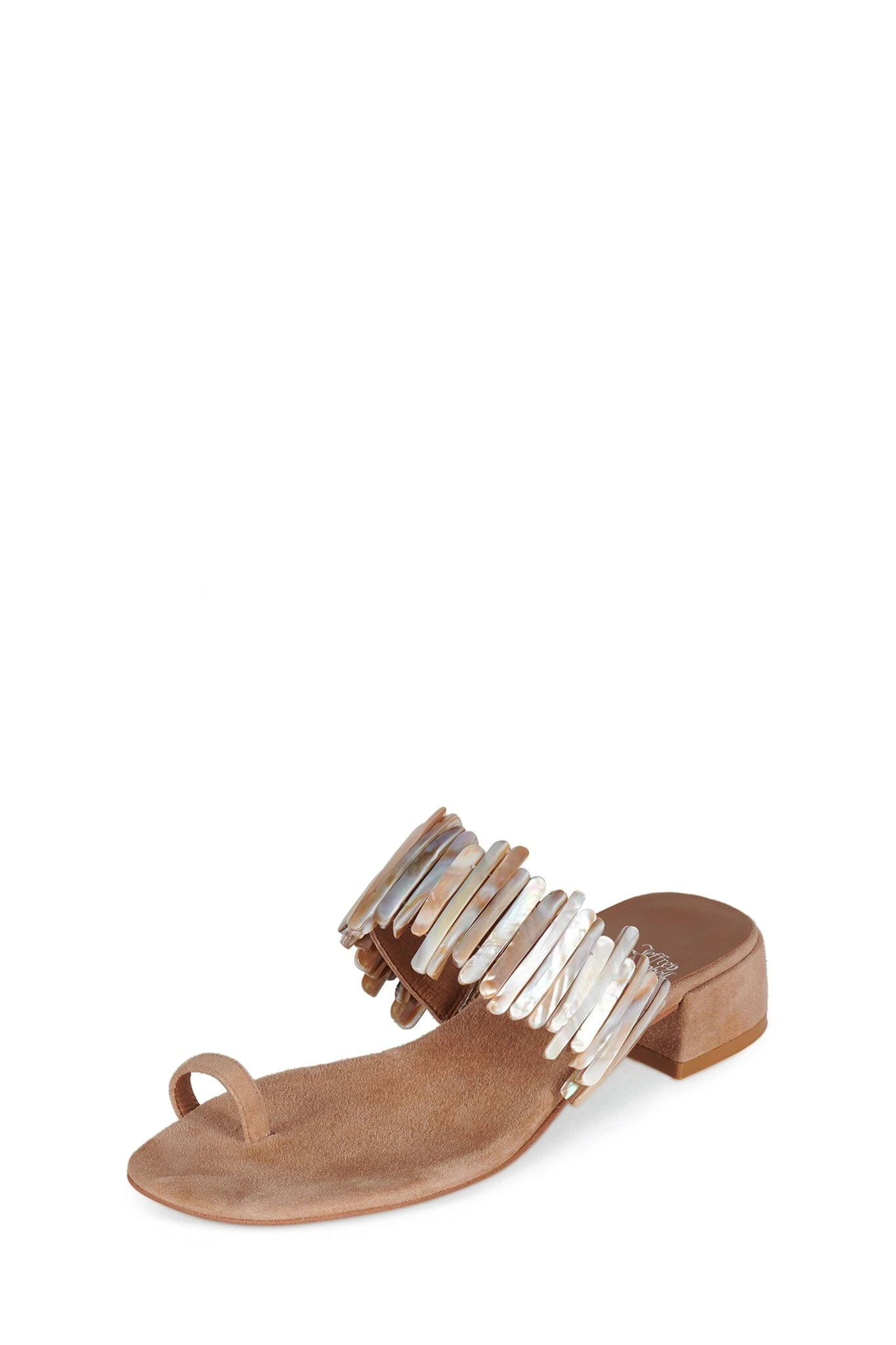 Heeled toe-ring sandal with shell detail